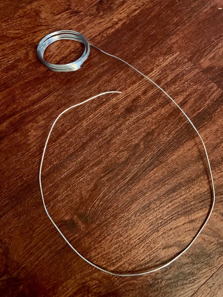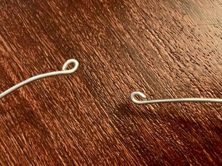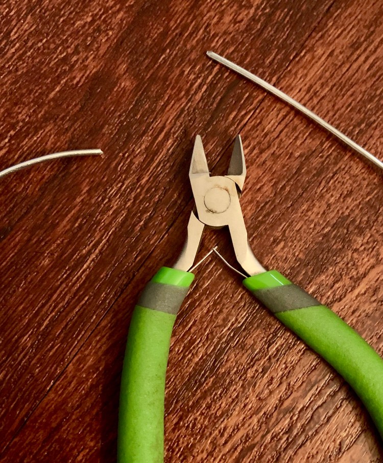 First, you cut a piece of the aluminum wire (length depends on how large you want your wreath). After you cut the wire, you bend it into a circular hoop and bend each edge down into itself so it isn’t sharp.