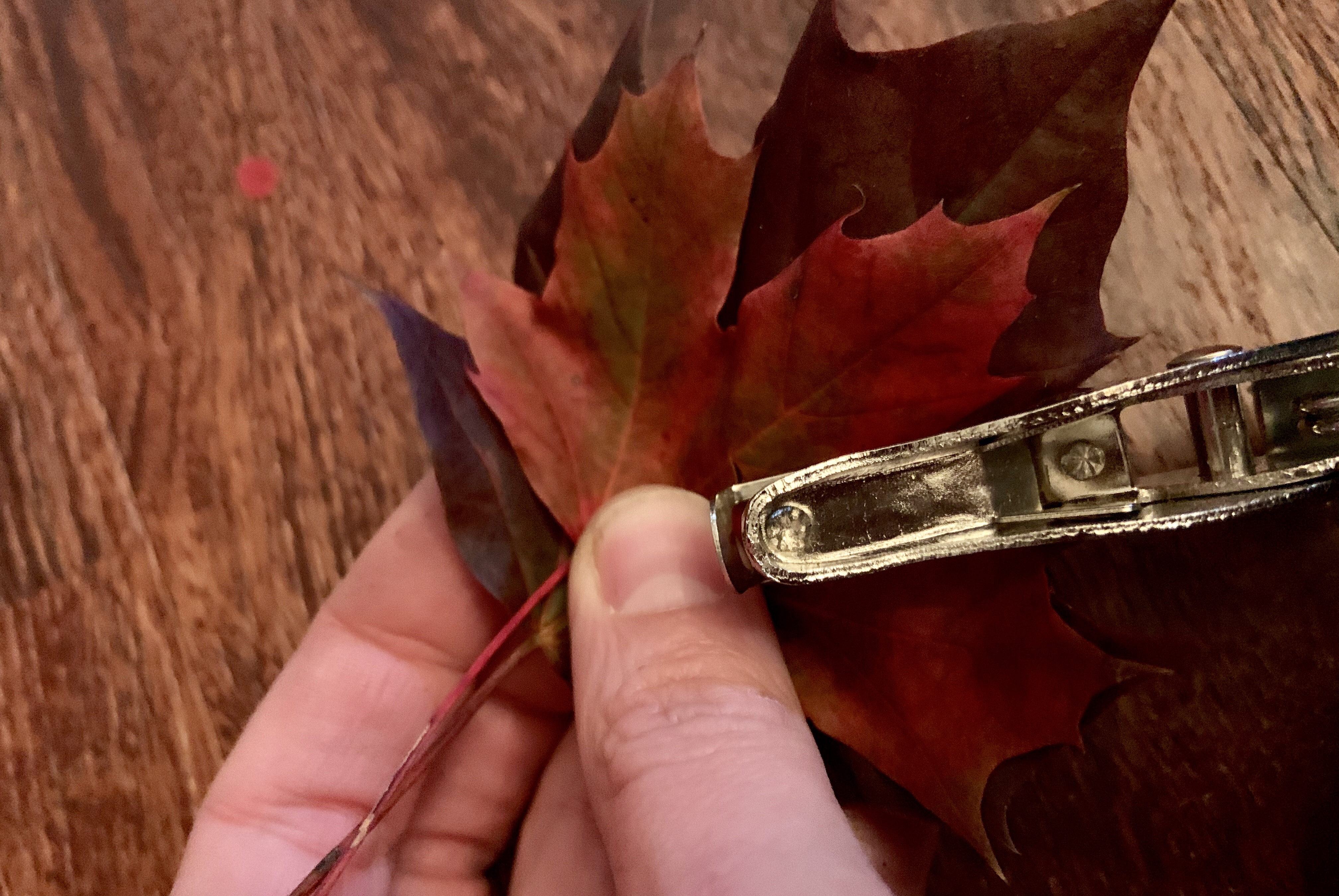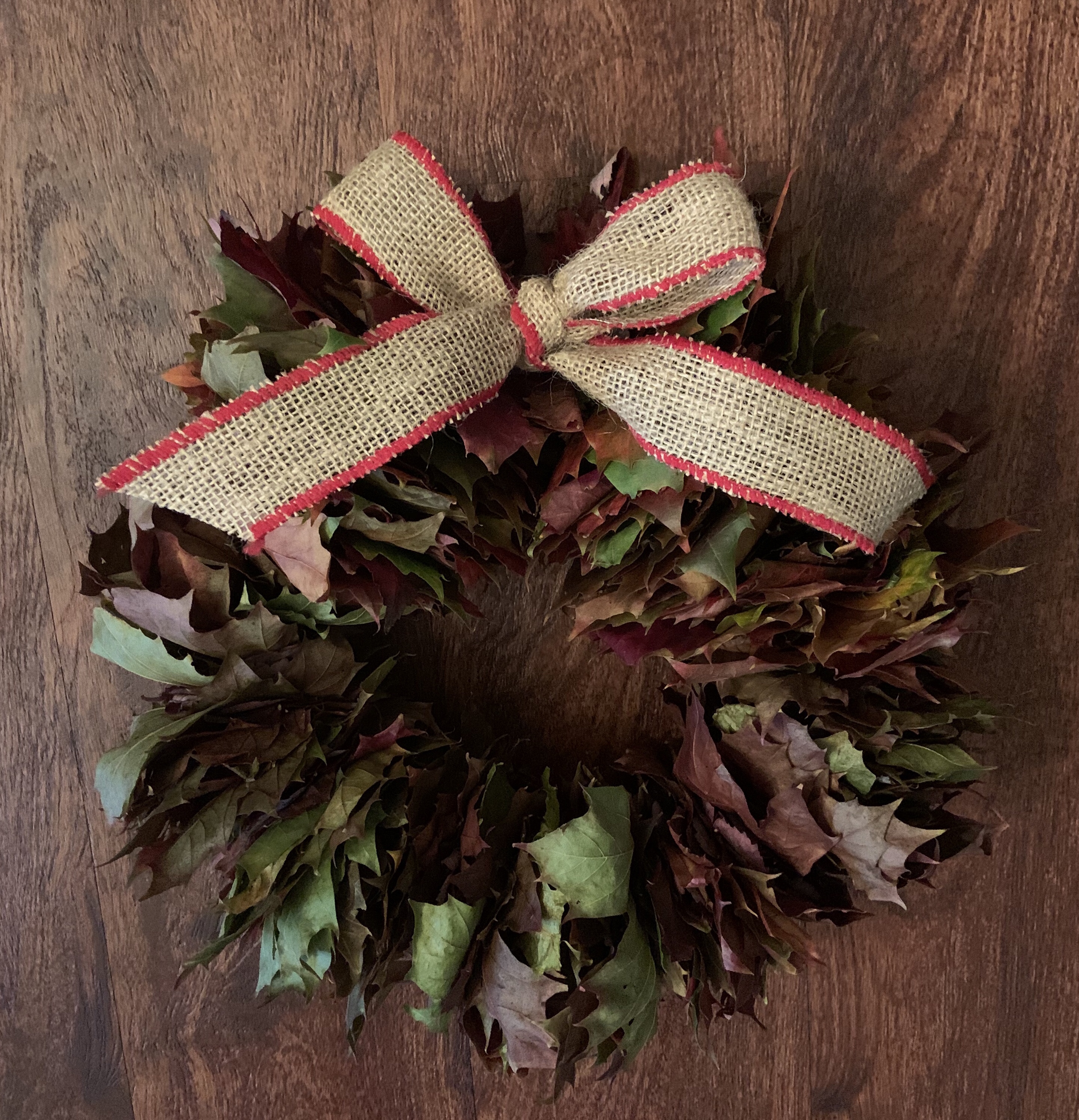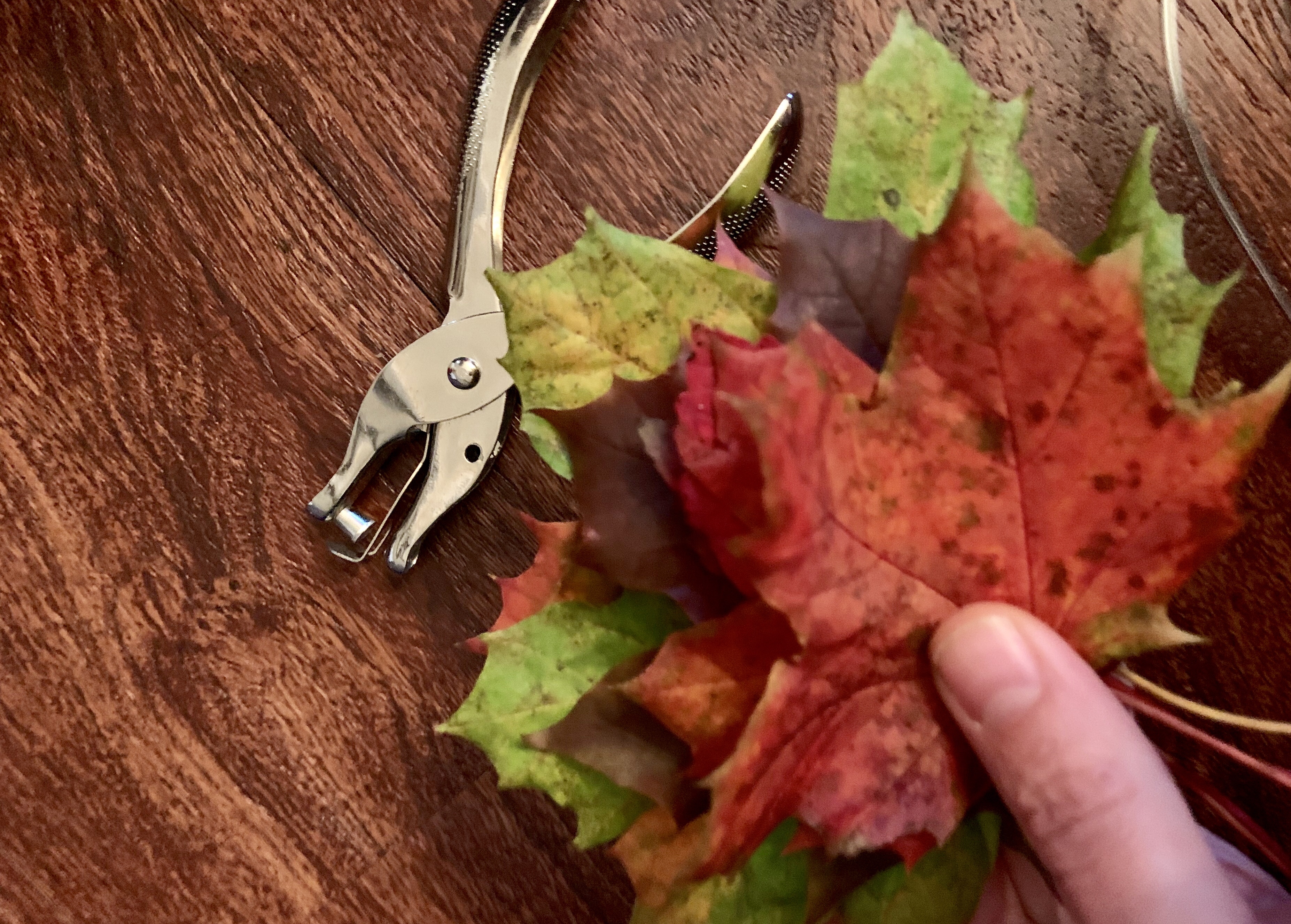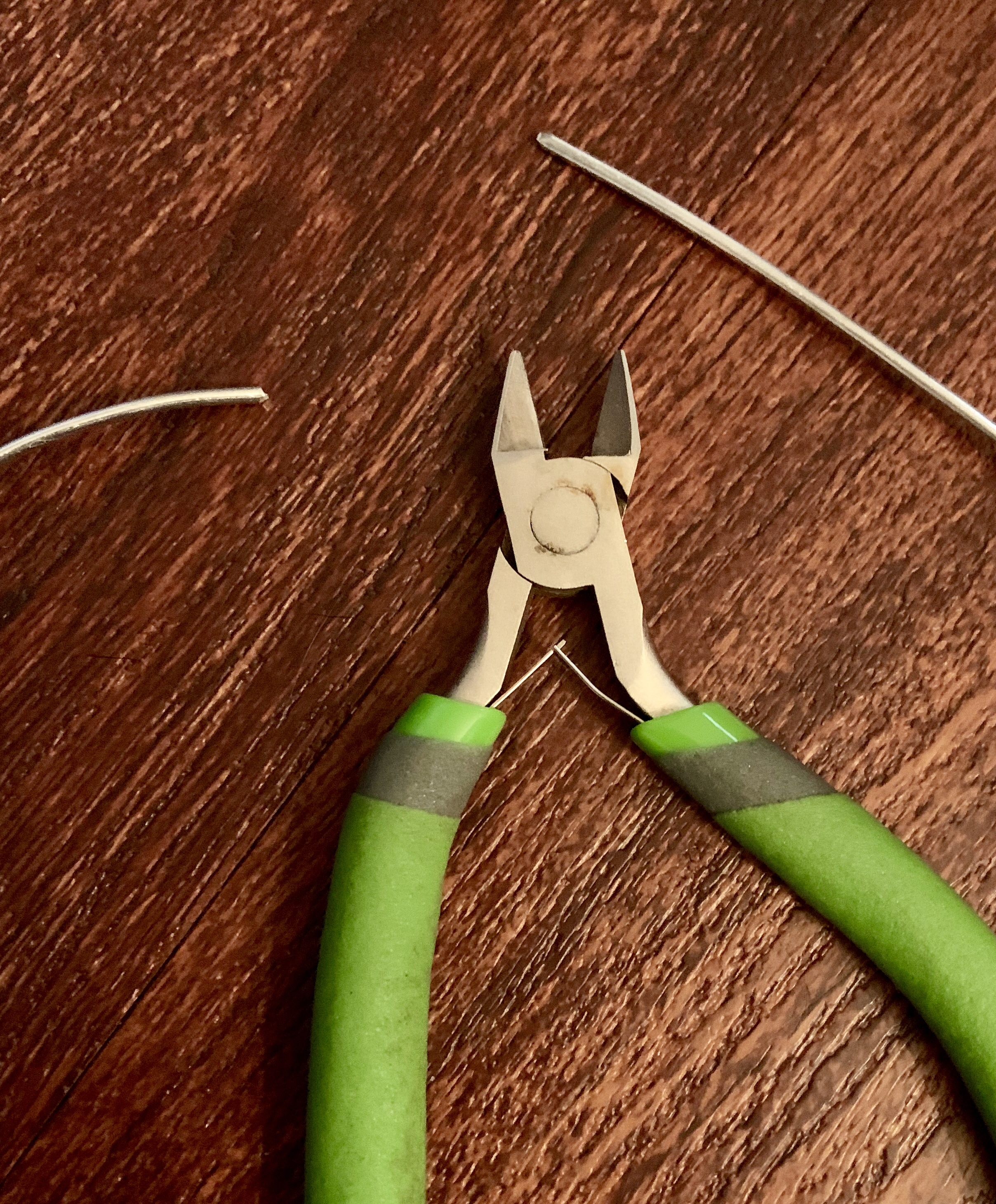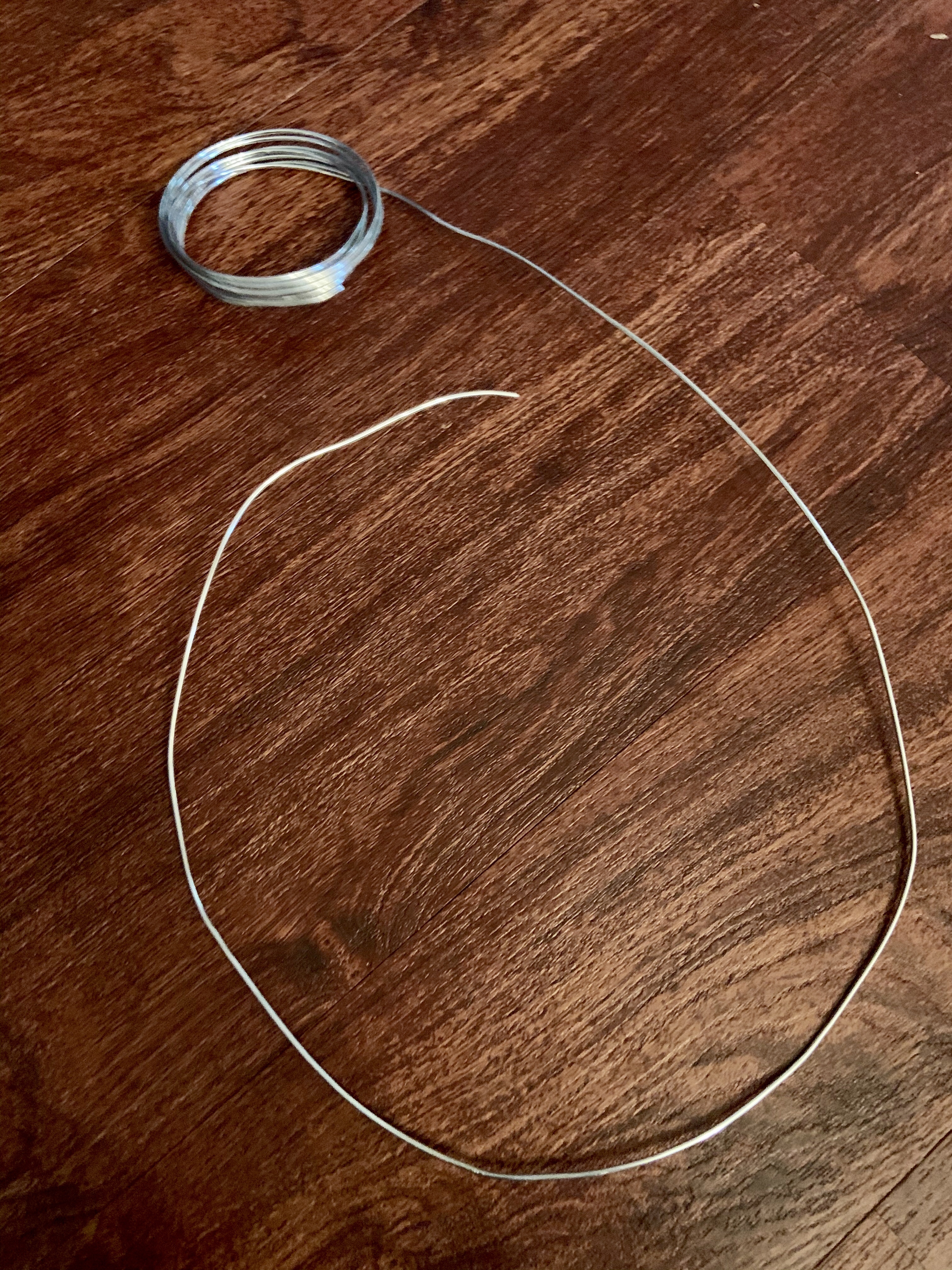 First, you cut a piece of the aluminum wire (length depends on how large you want your wreath). After you cut the wire, you bend it into a circular hoop and bend each edge down into itself so it isn’t sharp.